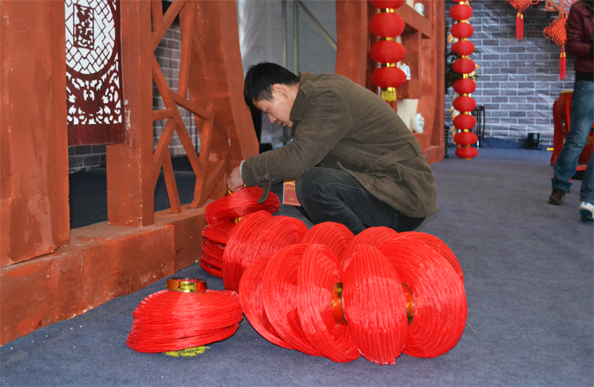 600個(gè)大紅燈籠高高掛——志愿者要經(jīng)過安燈、掛燈、試燈、調(diào)燈四個(gè)程序