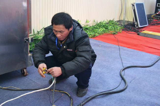 全天候保證會(huì)場(chǎng)用電——志愿者及時(shí)架設(shè)各種線路,排除場(chǎng)館用電故障