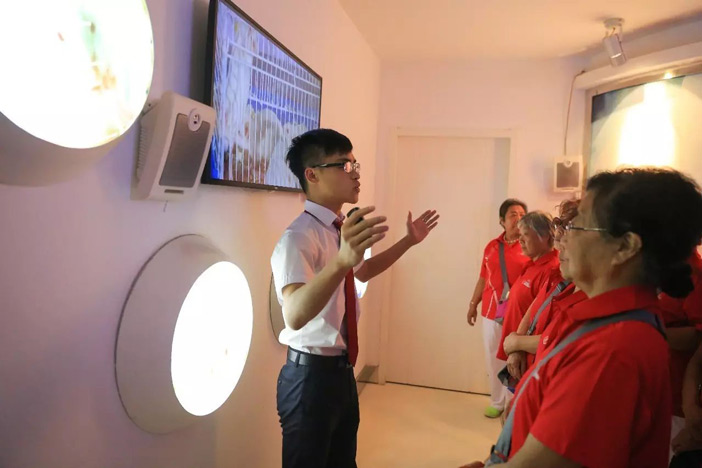 腳踩紅地毯,穿過2016-2017年“全民健身 快樂同行”大型公益活動全國照片集錦的主題長廊,健身愛好者們井然有序地在長廊里參觀,并與我們工作人員進行友好地互動。伴隨著歡聲笑語,大家步入了康姿百德磁科技展廳和腦血栓后遺癥康復(fù)治療設(shè)備展廳,了解磁與生命之間的奧秘。
