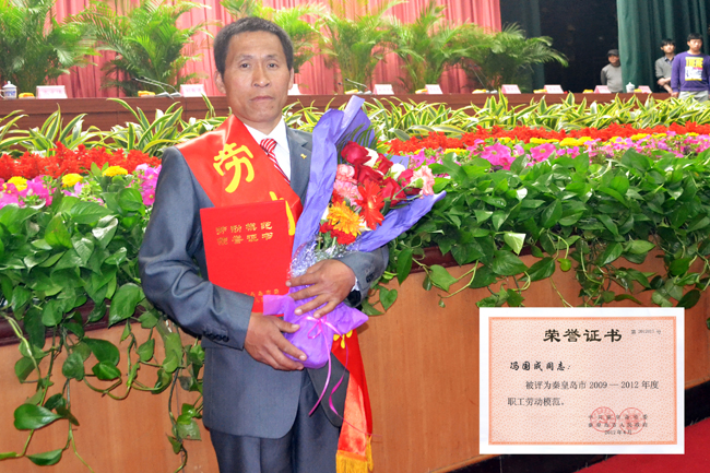 2012年4月24日,秦皇島市2009—2012年度市級(jí)勞動(dòng)模范表彰暨慶?!拔逡弧眹H勞動(dòng)節(jié)大會(huì)在秦皇島工人文化宮隆重召開。康姿百德公司制造后勤部機(jī)電主管馮國成同志被授予“秦皇島市2009-2012年度職工勞動(dòng)模范”榮譽(yù)稱號(hào),并受到了秦皇島市市委、市政府各級(jí)領(lǐng)導(dǎo)的親切接見。