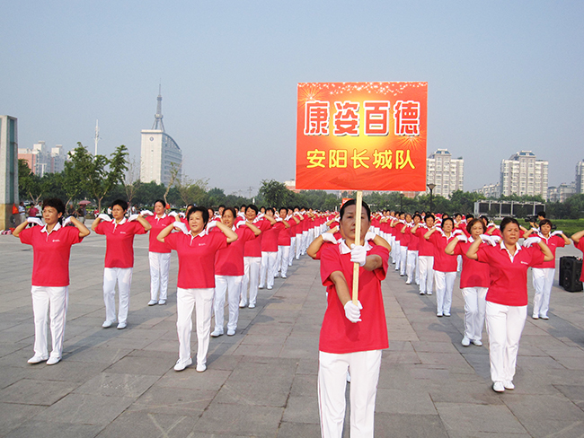 積極備戰(zhàn)9月份在秦皇島市舉行的2013“全民健身·快樂同行”大型公益活動總結(jié)表彰大會,進一步提高廣大群眾的全民健身意識、推廣普及全民健身活動,康姿百德健身操展演比賽活動近日相繼在安陽市舉行,深受人們的喜愛。 8月15日上午,康姿百德第二套健身操大賽在安陽市東區(qū)圖書館、博物館兩個廣場舉行,來自各個健身站點的520名康姿百德健身操隊員,在烈日的炙烤下,雖然個個汗流浹背,但卻精神抖擻、興奮不已。伴隨著一曲曲節(jié)奏明快、耳熟能詳?shù)囊魳罚?3支代表隊輪流上場、各展風采,隊員們時而伸臂擴胸,時而扭腿墊步,動作嫻熟整齊,隊形變幻奇妙,比賽現(xiàn)場猶如一幅幅美麗的畫卷,讓人應(yīng)接不暇,大飽眼?!?br style="margin:0px;padding:0px;" /> 此前,在8月8日舉行的安陽市“全民健身日”啟動儀式上,由450人組成的康姿百德健身操隊伍,以其龐大的陣容和精彩的演出,為人們傳遞了健康、快樂和幸福,得到了廣大群眾的一致好評。 據(jù)悉,8月24日,康姿百德產(chǎn)品說明會又將在安陽市兩館廣場舉行,屆時將再次舉行康姿百德健身操展演,并為在康姿百德第二套健身操大賽中獲獎的代表隊頒獎。