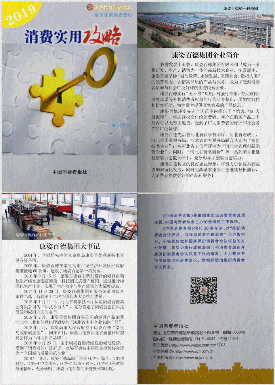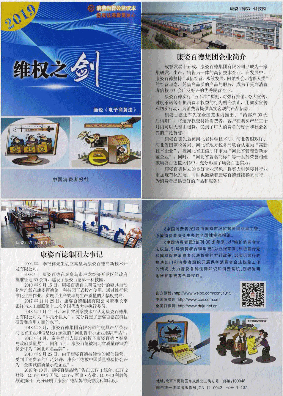 中國(guó)消費(fèi)者報(bào)社印發(fā)的普法手冊(cè)《消費(fèi)實(shí)用攻略》、《維權(quán)之劍》,均對(duì)康姿百德進(jìn)行了報(bào)道。