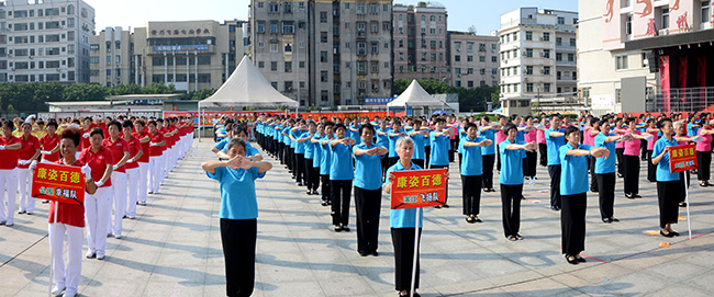 9月28日,贛州康姿百德戶外健身營攜手章貢區(qū)委老干部局、章貢區(qū)體育局、章貢區(qū)老年體協(xié),在章貢奧林匹克廣場舉行了以“健身家園 最美夕陽”為主題的康姿百德健身操展演活動,廣大老年朋友歡聚一堂,喜迎國慶節(jié)和重陽節(jié)的到來,暢享健康幸福新生活。 本次活動共有15個代表隊、600多名康姿百德健身操愛好者參加,大家在《開門紅》、《中國美》等優(yōu)美的旋律下,舞動健康,舞動精彩,展示了老年朋友積極向上的生活熱情,向全社會倡導(dǎo)“老有所樂、老有所為”的生活情趣,在當(dāng)?shù)禺a(chǎn)生了良好的反響。贛州電視臺、章貢區(qū)電視臺對本次活動進行了新聞報道。