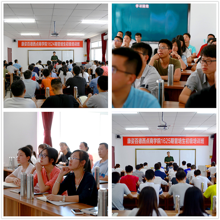 康姿百德西點(diǎn)商學(xué)院是為公司培養(yǎng)優(yōu)秀管理人才的搖籃,“鑄就堅(jiān)毅品格,塑造將軍搖籃”是康姿百德西點(diǎn)商學(xué)院的精神所在。培訓(xùn)學(xué)習(xí)期間,康姿百德西點(diǎn)商學(xué)院將會用系統(tǒng)化的學(xué)習(xí)課程、嚴(yán)格的培訓(xùn)紀(jì)律以及科學(xué)化的培訓(xùn)體系幫助學(xué)員迅速提升。同時(shí),包括公司董事長在內(nèi)的高管也會參與授課,幫助發(fā)掘、培養(yǎng)學(xué)員領(lǐng)導(dǎo)力。經(jīng)過西點(diǎn)商學(xué)院科學(xué)而又嚴(yán)謹(jǐn)?shù)呐嘤?xùn),這些剛剛?cè)肼毜墓芘嗌鷤儠焖俚赝懽兂砷L,成為優(yōu)秀的職場新秀。