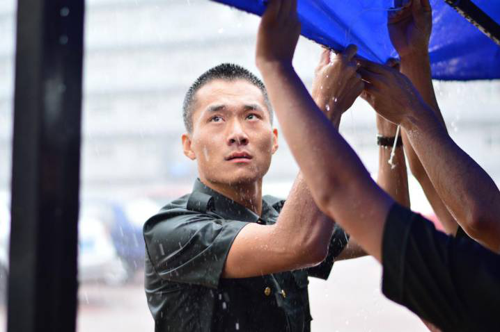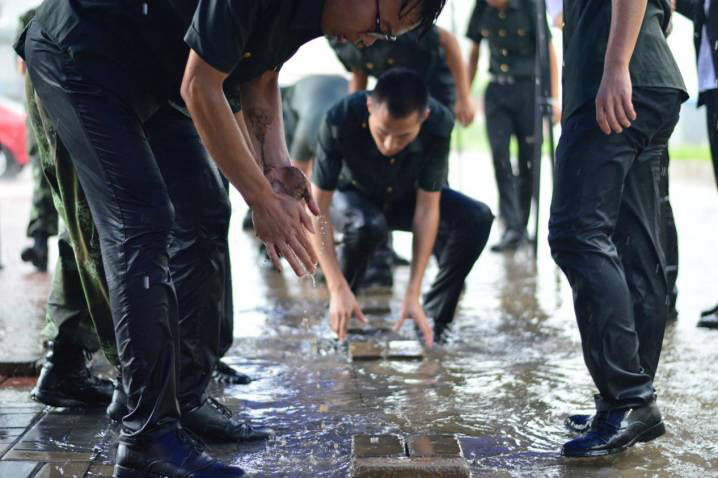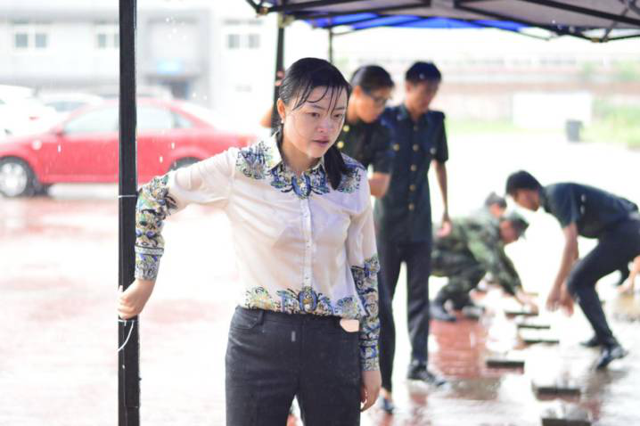 雨勢過大,腳下的路亦要守護(hù),一鼓作氣,徒手為學(xué)員們搭建愛心之路。