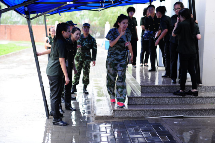 因?yàn)閻?,西點(diǎn)商學(xué)院副院長劉婷也化身女漢子,為了學(xué)員們的順利通行搭建愛的屏障。