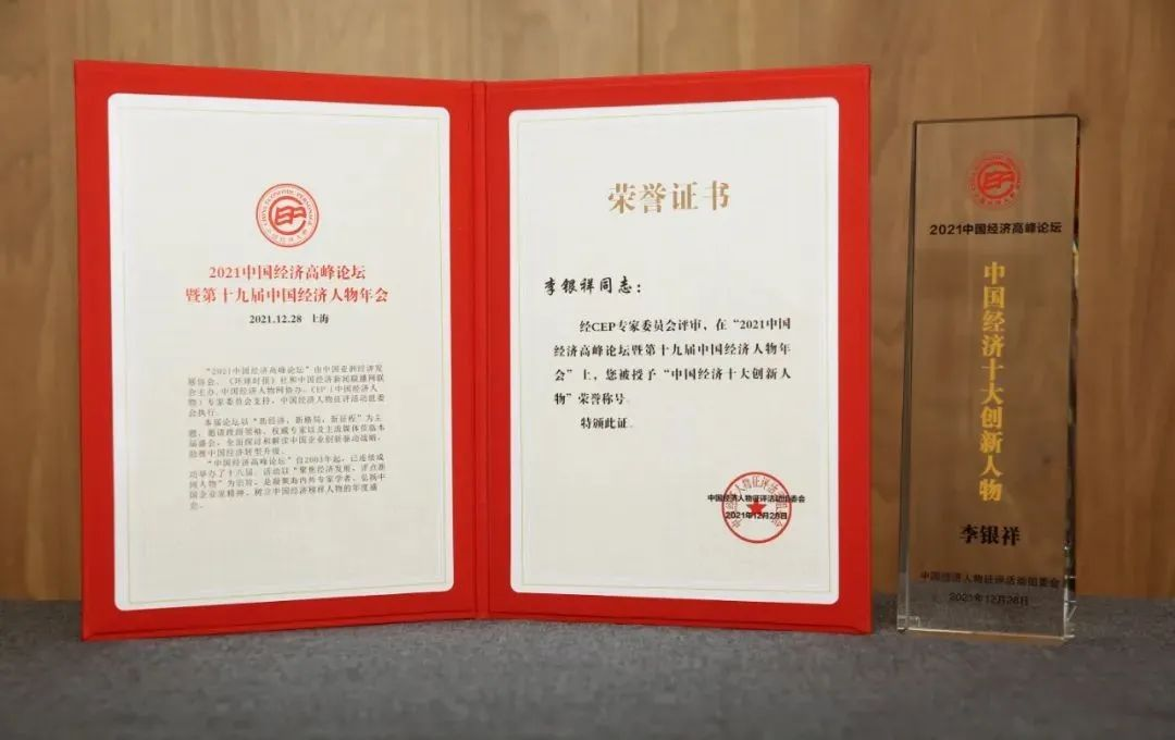 “中國經(jīng)濟(jì)十大創(chuàng)新人物”榮譽獎杯和證書