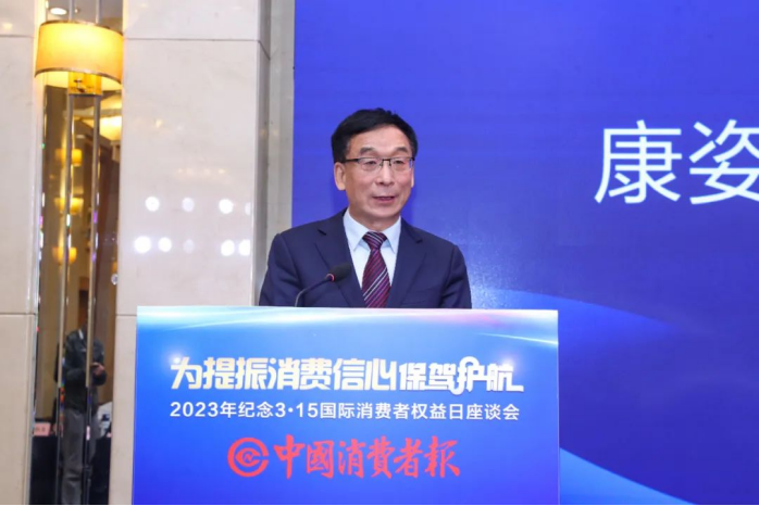 3月14日,2023年度“紀(jì)念3·15”國際消費(fèi)者權(quán)益日座談會(huì)在京召開。來自國家市場監(jiān)督管理總局相關(guān)司局負(fù)責(zé)人、中國消費(fèi)者協(xié)會(huì)領(lǐng)導(dǎo),以及在保護(hù)消費(fèi)者權(quán)益方面貢獻(xiàn)突出的典范企業(yè)等,共同參加本次座談會(huì)??底税俚录瘓F(tuán)董事長李銀祥作為保障消費(fèi)者權(quán)益的優(yōu)秀企業(yè)代表,受邀出席并作主旨演講。