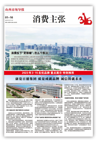 2023年是把握市場機(jī)遇的關(guān)鍵之年,面對全新的機(jī)遇和挑戰(zhàn),康姿百德充分展示出了在大健康領(lǐng)域的專業(yè)服務(wù)能力和領(lǐng)先優(yōu)勢,取得了令人矚目的輝煌成績。同時(shí)公司也受到了中國消費(fèi)者報(bào)、市場監(jiān)督管理雜志、河北經(jīng)濟(jì)日報(bào)、河北日報(bào)、山西市場導(dǎo)報(bào)、遼寧電視臺(tái)、宜昌電視臺(tái)等多家權(quán)威媒體和主流視頻平臺(tái)的全方位、多視角報(bào)道,實(shí)現(xiàn)了全網(wǎng)絡(luò)覆蓋,全平臺(tái)傳播。