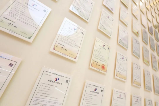 整面的專(zhuān)利墻,收錄了李銀祥董事長(zhǎng)領(lǐng)導(dǎo)的旗下集團(tuán)百余項(xiàng)專(zhuān)利。這面墻沒(méi)有過(guò)多的裝飾,卻足以彰顯李銀祥董事長(zhǎng)對(duì)科研創(chuàng)新的重視和投入??底税俚略诶钽y祥董事長(zhǎng)的領(lǐng)導(dǎo)下,自成立以來(lái)就高度重視在科研方面的投入,不斷加大科研投入力度,致力于提升產(chǎn)品和服務(wù)質(zhì)量。