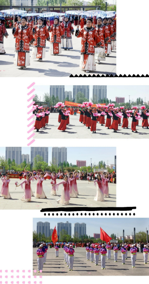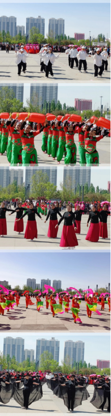 歌舞展演活動(dòng)在集體舞《母親是中華》中拉開序幕,昂揚(yáng)的旋律與優(yōu)美的舞姿交織成一幅動(dòng)人的畫面,為觀眾帶來了一場(chǎng)震撼心靈的視聽盛宴。之后,廣場(chǎng)舞、扇子舞、民族舞蹈等節(jié)目輪番上陣、異彩紛呈。參演者們身著艷麗的服裝,各個(gè)精神飽滿,隨著動(dòng)感的音樂,踏著輕快的節(jié)拍,動(dòng)作標(biāo)準(zhǔn)優(yōu)美,隊(duì)列整齊有序,彰顯了健康活力,傳遞著運(yùn)動(dòng)的魅力。