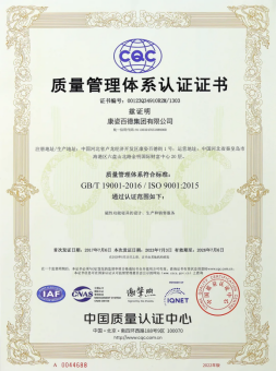 早在2008年,康姿百德就已順利完成并通過(guò)質(zhì)量管理體系認(rèn)證審核。這說(shuō)明康姿百德在標(biāo)準(zhǔn)化經(jīng)營(yíng)、規(guī)范化管理模式、質(zhì)量管理體系運(yùn)行方面得到了標(biāo)準(zhǔn)化組織的充分認(rèn)可。廣大消費(fèi)者選擇通過(guò)ISO 9001認(rèn)證的產(chǎn)品,可以得到更好的保障、更高的滿意度和更好的服務(wù)質(zhì)量。