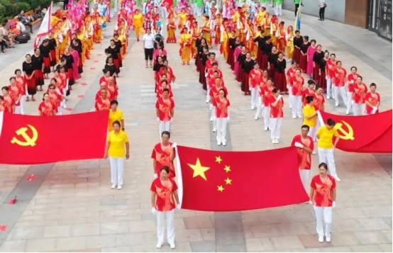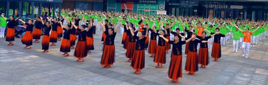 健身操愛(ài)好者身著統(tǒng)一服裝,和著動(dòng)感歡快的音樂(lè),踏著輕快自信的舞步,以飽滿的熱情、流暢的動(dòng)作、豐富的表現(xiàn)力,為大家呈現(xiàn)出一場(chǎng)肢體與律動(dòng)的完美盛宴。展演現(xiàn)場(chǎng)吸引了眾多群眾駐足圍觀,讓大家充分感受到了全民健身的快樂(lè)與魅力,也贏得了在場(chǎng)觀眾的陣陣掌聲。