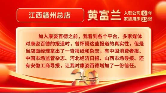 康姿百德20周年專賣店員工的系列故事會持續(xù)推出,讓我們一起期待其他地區(qū)專賣店員工代表的精彩故事吧!