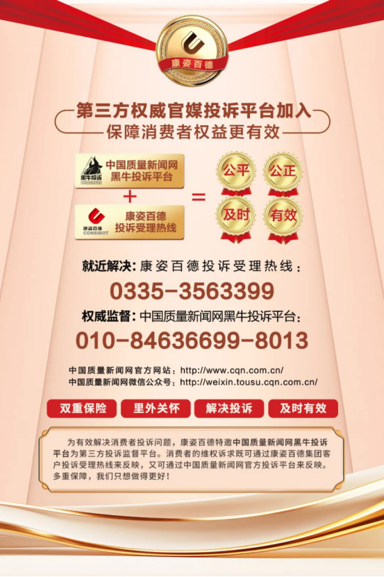 多年來,康姿百德認(rèn)真踐行“以客戶為中心”的企業(yè)核心價值觀,高度重視消費(fèi)者的需求和體驗(yàn)??底税俚录瘓F(tuán)已于2024年3月加入了全國消協(xié)“智慧315”消費(fèi)維權(quán)投訴平臺。除此之外,康姿百德還特邀中國質(zhì)量新聞網(wǎng)黑牛投訴平臺作為企業(yè)第三方投訴監(jiān)督平臺,并統(tǒng)一制作監(jiān)督舉報公示牌懸掛在全國所有門店內(nèi),主動接受消費(fèi)者的監(jiān)督。