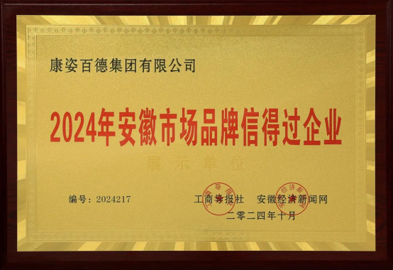 “2024年安徽市場品牌信得過企業(yè)”榮譽(yù)稱號(hào)