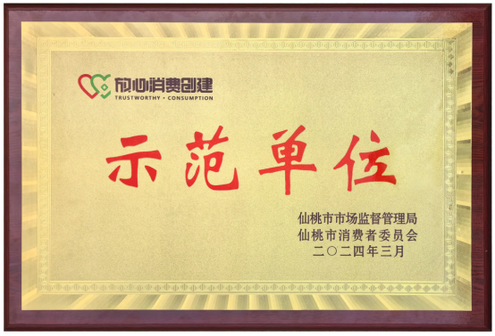 12 仙桃康姿百德榮獲"放心消費(fèi)創(chuàng)建示范單位"榮譽(yù)稱號(hào)
