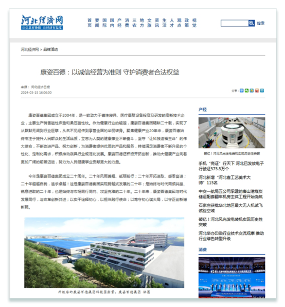 河北經(jīng)濟(jì)網(wǎng)、中國質(zhì)量監(jiān)管網(wǎng)、四川消費(fèi)質(zhì)量網(wǎng)等多家媒體也對(duì)康姿百德進(jìn)行了全方位報(bào)道。