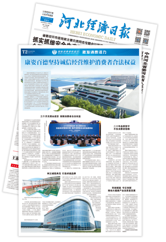 《河北經(jīng)濟(jì)日?qǐng)?bào)》由河北日?qǐng)?bào)報(bào)業(yè)集團(tuán)主辦,是河北省委、省政府指導(dǎo)全省經(jīng)濟(jì)工作的重要輿論陣地。作為河北省優(yōu)秀企業(yè),康姿百德拉動(dòng)了經(jīng)濟(jì)消費(fèi),對(duì)河北省乃至全國消費(fèi)者權(quán)益保護(hù)起到了積極、深遠(yuǎn)的影響。因在誠信經(jīng)營和消費(fèi)者權(quán)益保護(hù)等方面取得的優(yōu)異成績,《河北經(jīng)濟(jì)日?qǐng)?bào)》連續(xù)6年對(duì)康姿百德進(jìn)行報(bào)道。