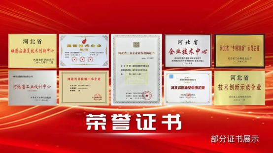 康姿百德的科研實(shí)力,獲得了社會(huì)各界的一致認(rèn)可,先后榮獲“高新技術(shù)企業(yè)”“河北省磁感應(yīng)康復(fù)技術(shù)創(chuàng)新中心”“河北省技術(shù)創(chuàng)新示范企業(yè)”“河北省‘專精特新’示范企業(yè)”“河北省企業(yè)技術(shù)中心”“磁科技應(yīng)用研發(fā)機(jī)構(gòu)(A級(jí))”“河北省科技型中小企業(yè)”“磁科技應(yīng)用工程技術(shù)研究中心”等多項(xiàng)資質(zhì)和榮譽(yù)。