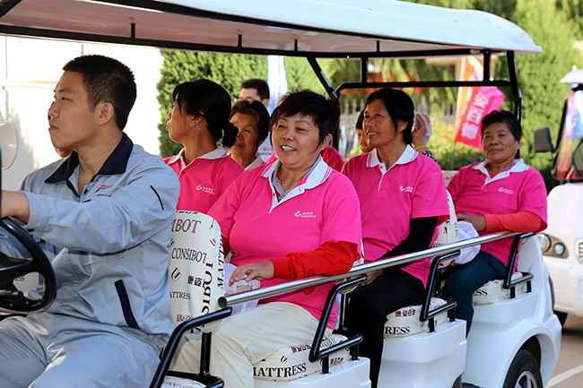 “第一次坐車參觀生產(chǎn)線,工廠一定很正規(guī)”——顧客乘坐參觀車參觀康姿百德制造中心